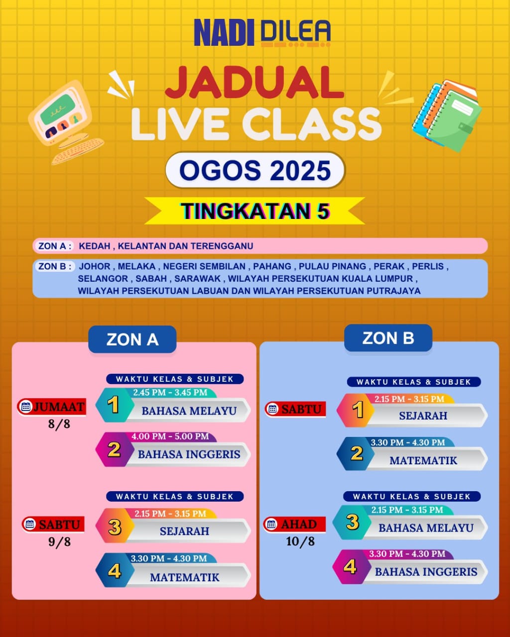 NADI-Nurture DILEA Digital Learning – Jadual Live Class Ogos 2025 Tingkatan 5