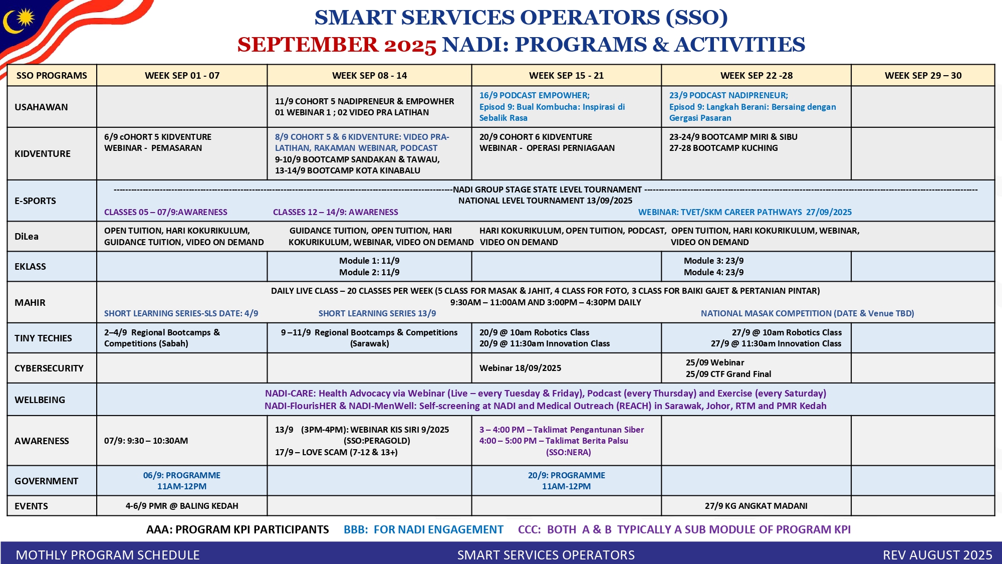 SMART SERVICES PROGRAM SCHEDULE SEPTEMBER 2025