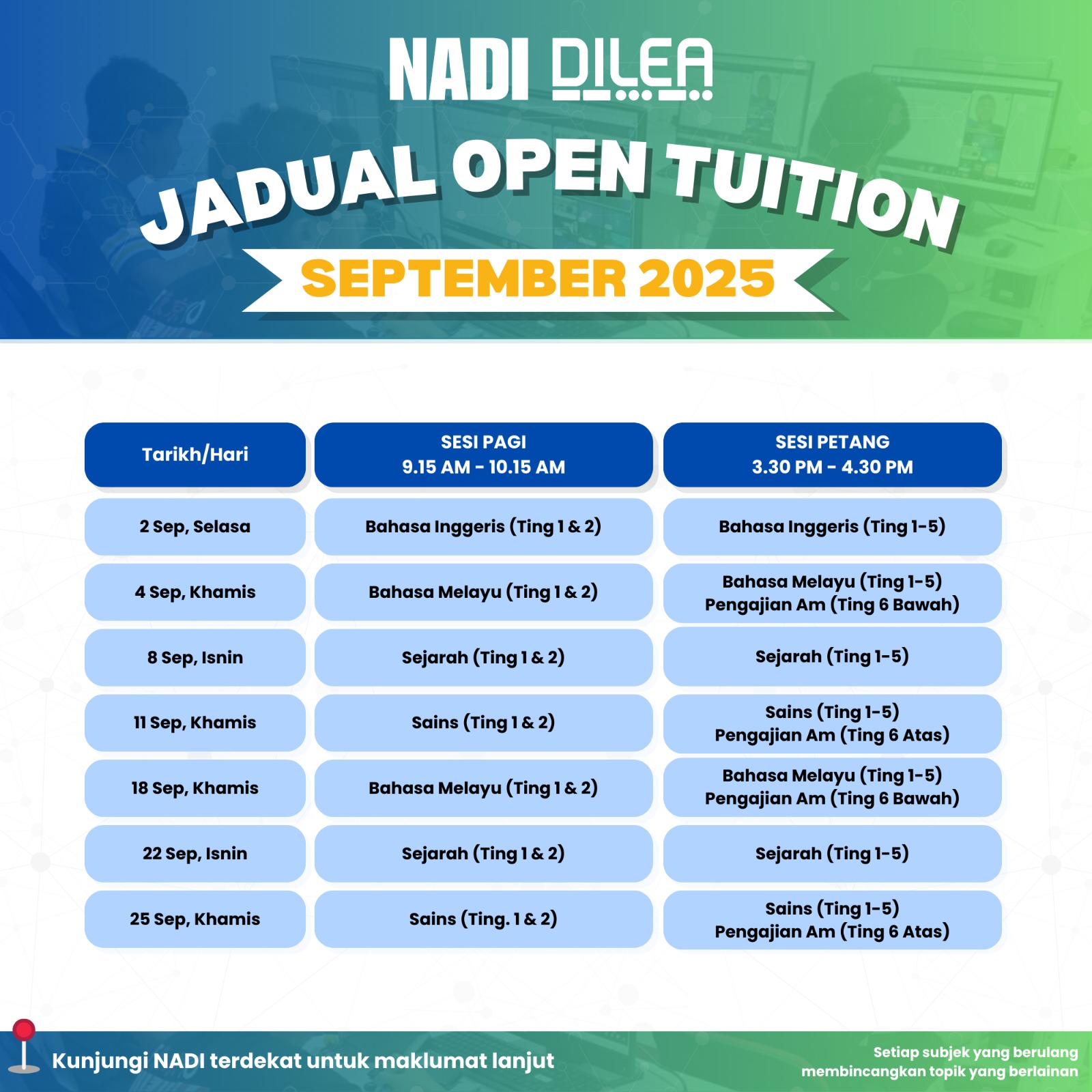 DILEA Digital Learning – Jadual Open Tuition September 2025