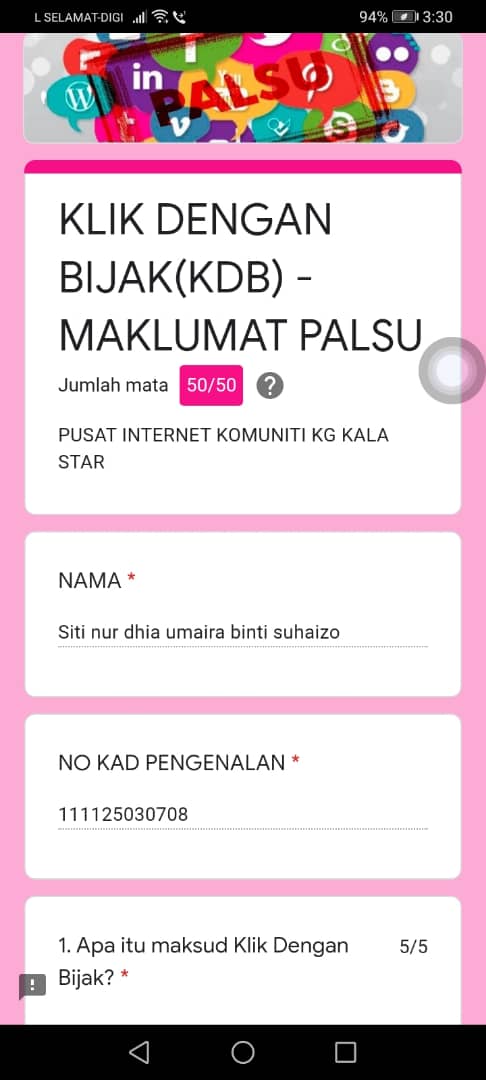 Klik Dengan Bijak (KDB) – Maklumat Palsu