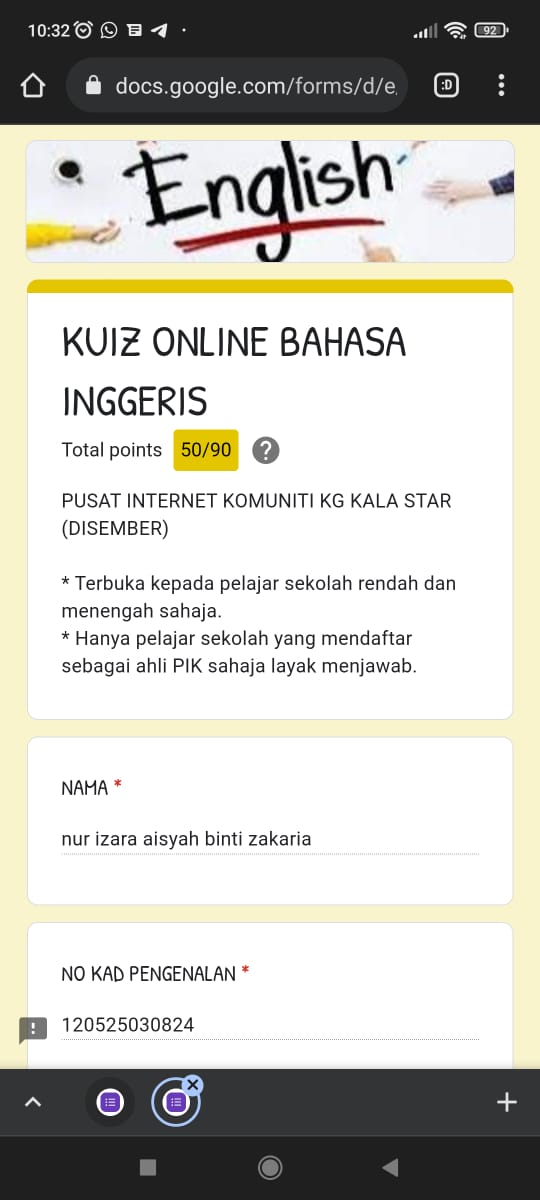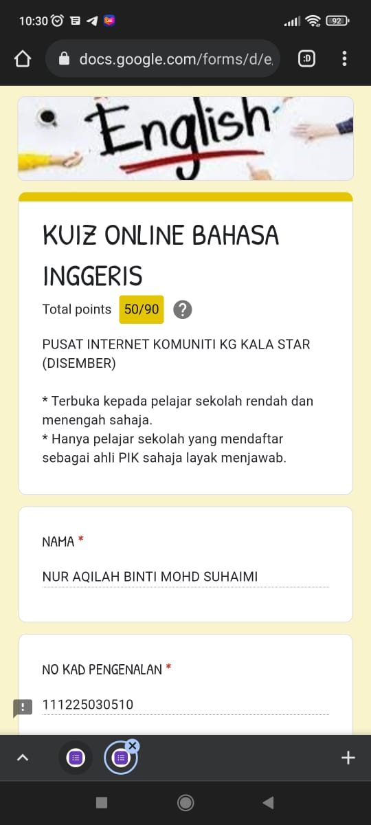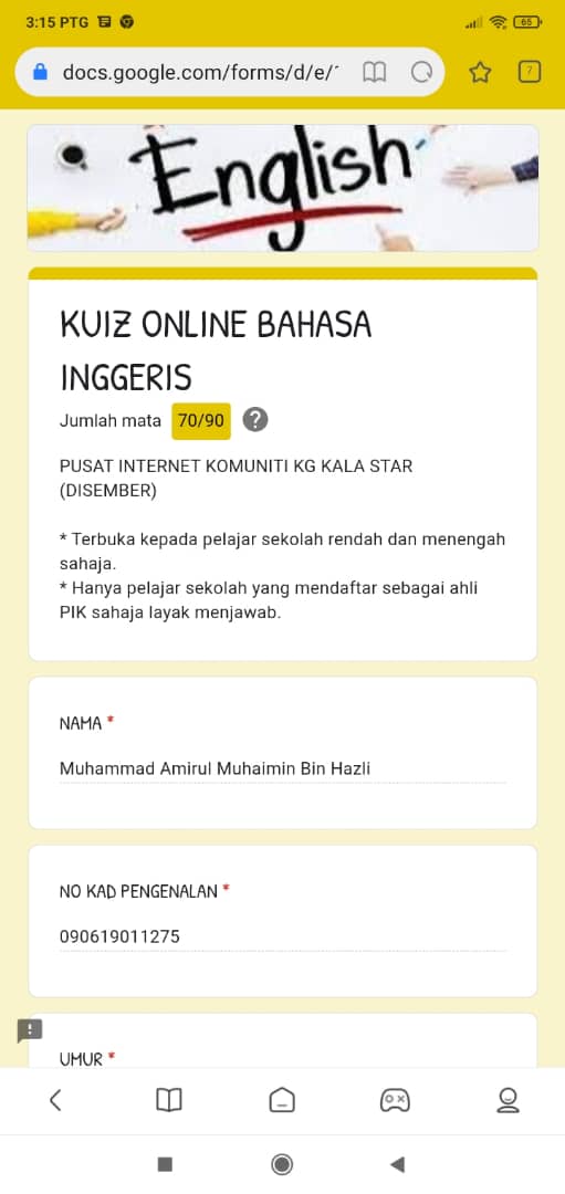 Kuiz Online Bahasa Inggeris