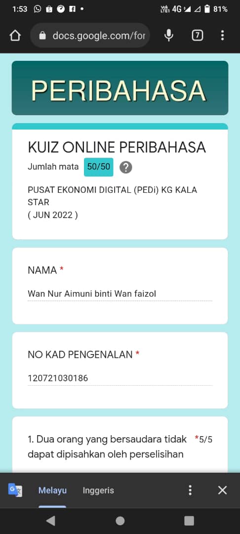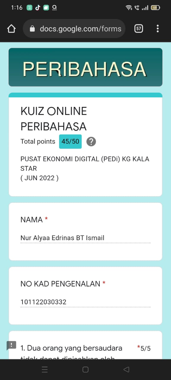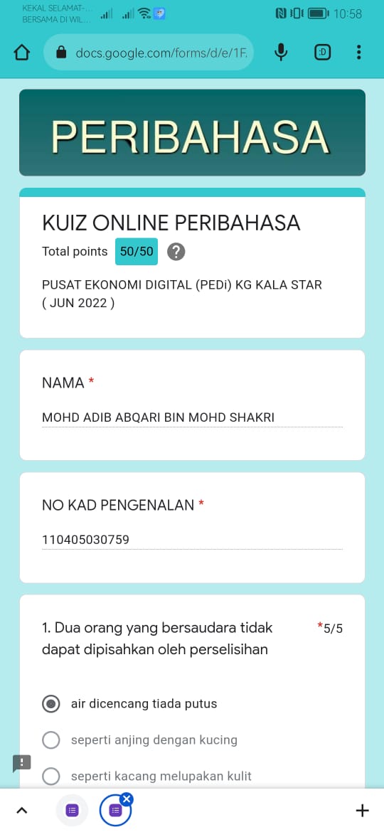 Kuiz Online Peribahasa